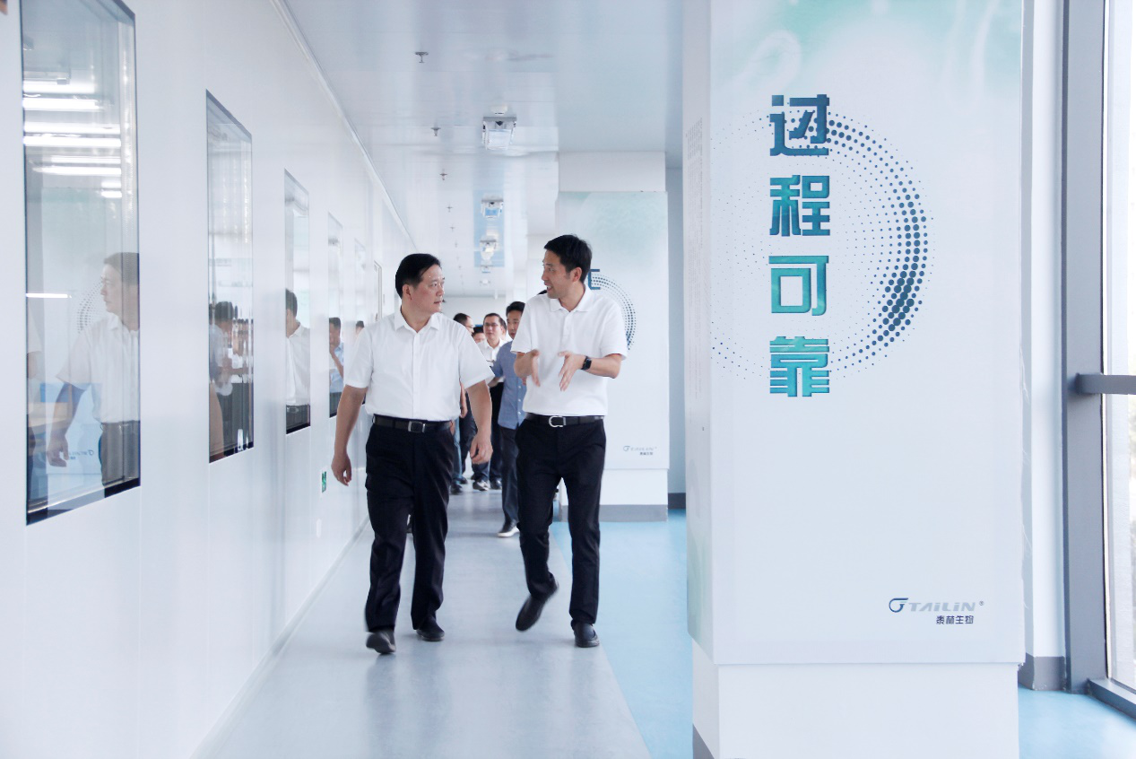 9月23日下午,杭州市富陽區(qū)委書記朱黨其一行蒞臨泰林東洲基地,開展“走親連心三服務(wù)”走訪調(diào)研活動(dòng)。區(qū)領(lǐng)導(dǎo)丁永剛、許玉鈞參加調(diào)研,區(qū)委辦、區(qū)經(jīng)信局、區(qū)財(cái)政局、區(qū)科技局、區(qū)督查辦、區(qū)金融辦、富陽經(jīng)濟(jì)技術(shù)開發(fā)區(qū)領(lǐng)導(dǎo)和東洲街道領(lǐng)導(dǎo)陪同調(diào)研。泰林生物董事長葉大林、泰林生命科學(xué)公司總經(jīng)理沈志林、泰林醫(yī)學(xué)工程公司總經(jīng)理夏信群熱情接待。